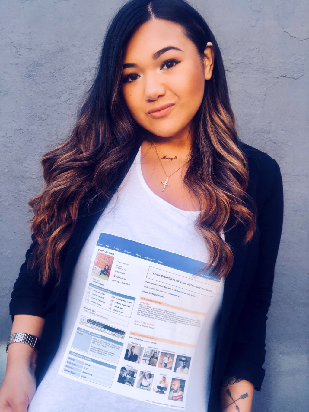 And yes, you totally saw that correct! ..I re-created CODE CRUMBS on MySpace — 2004 style. 😂 And I had it printed on my shirt because who doesn’t love a little nostalgia on their tank tops!?